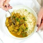When the chicken is tender and falling apart, gently shred it with two forks and stir in the Garam Masala. Mix well until everything is coated and softened in the sauce.
